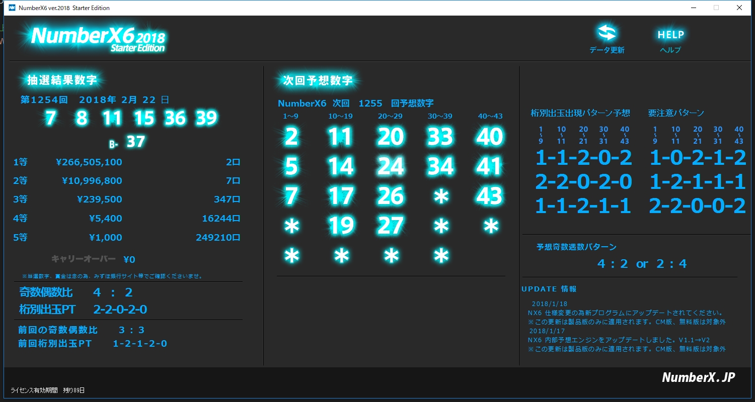 NumberX6(以下NX6)は数字選択宝くじロト6の数字予想、絞り込みアシストソフトです。